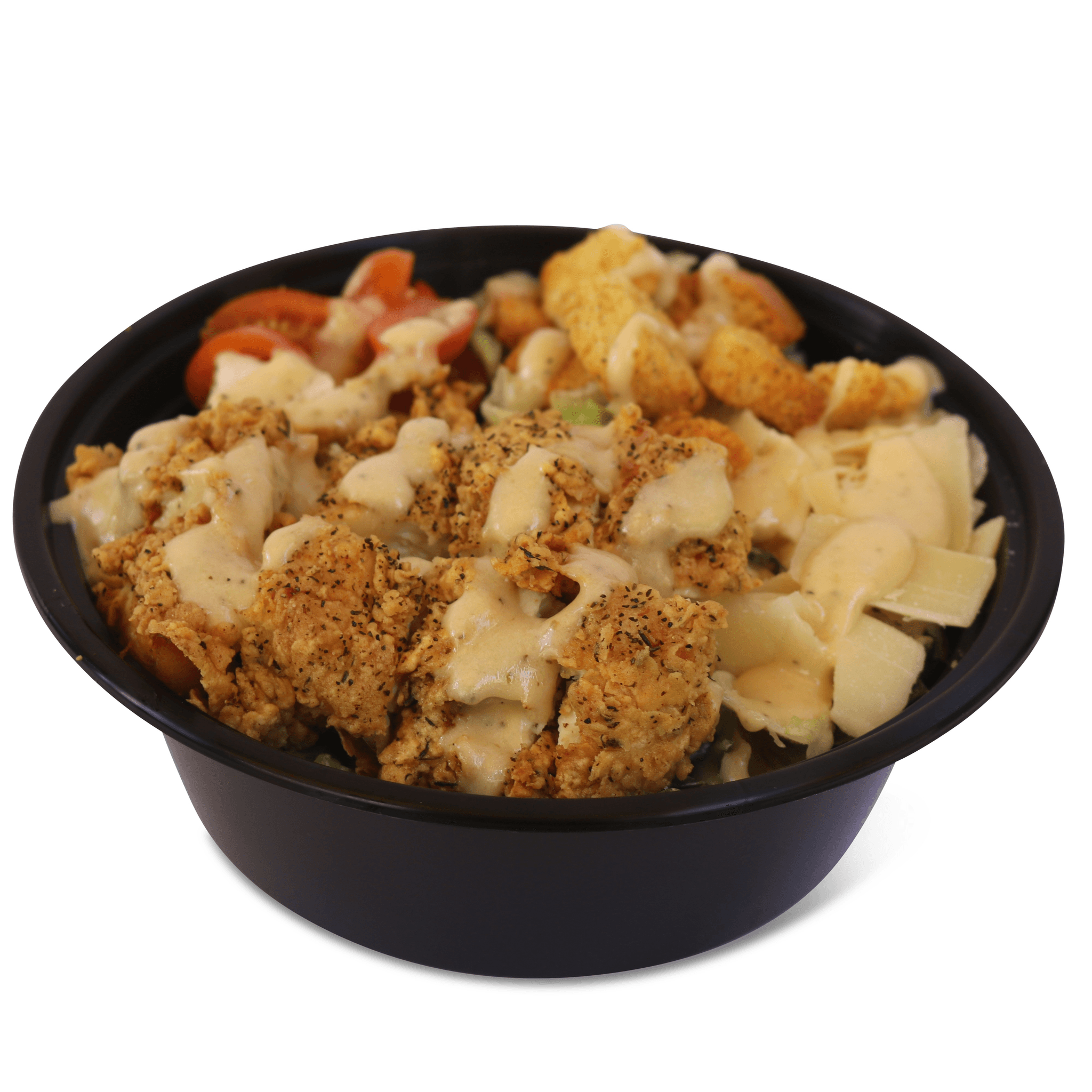 Fresh Romain Lettuce, Cherry Tomatoes, Topped With Crispy Chicken, Freshly Grated Parmesan, Croutons With A Side Of Caesar Dressing
