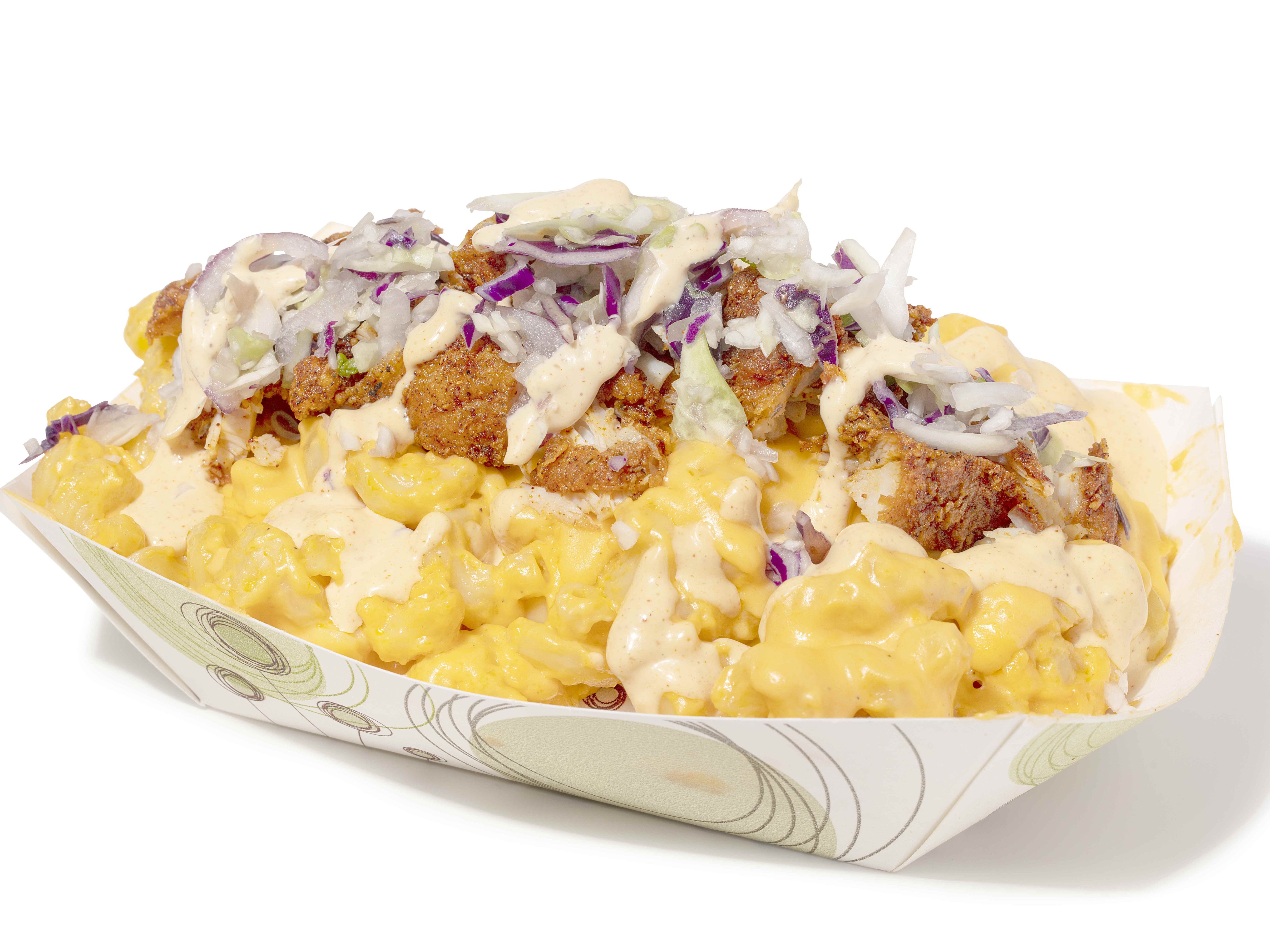 Our Famous Mac & Cheese topped with Chicken, Simpleslaw, and our House sauce. Served with pickles on the side.