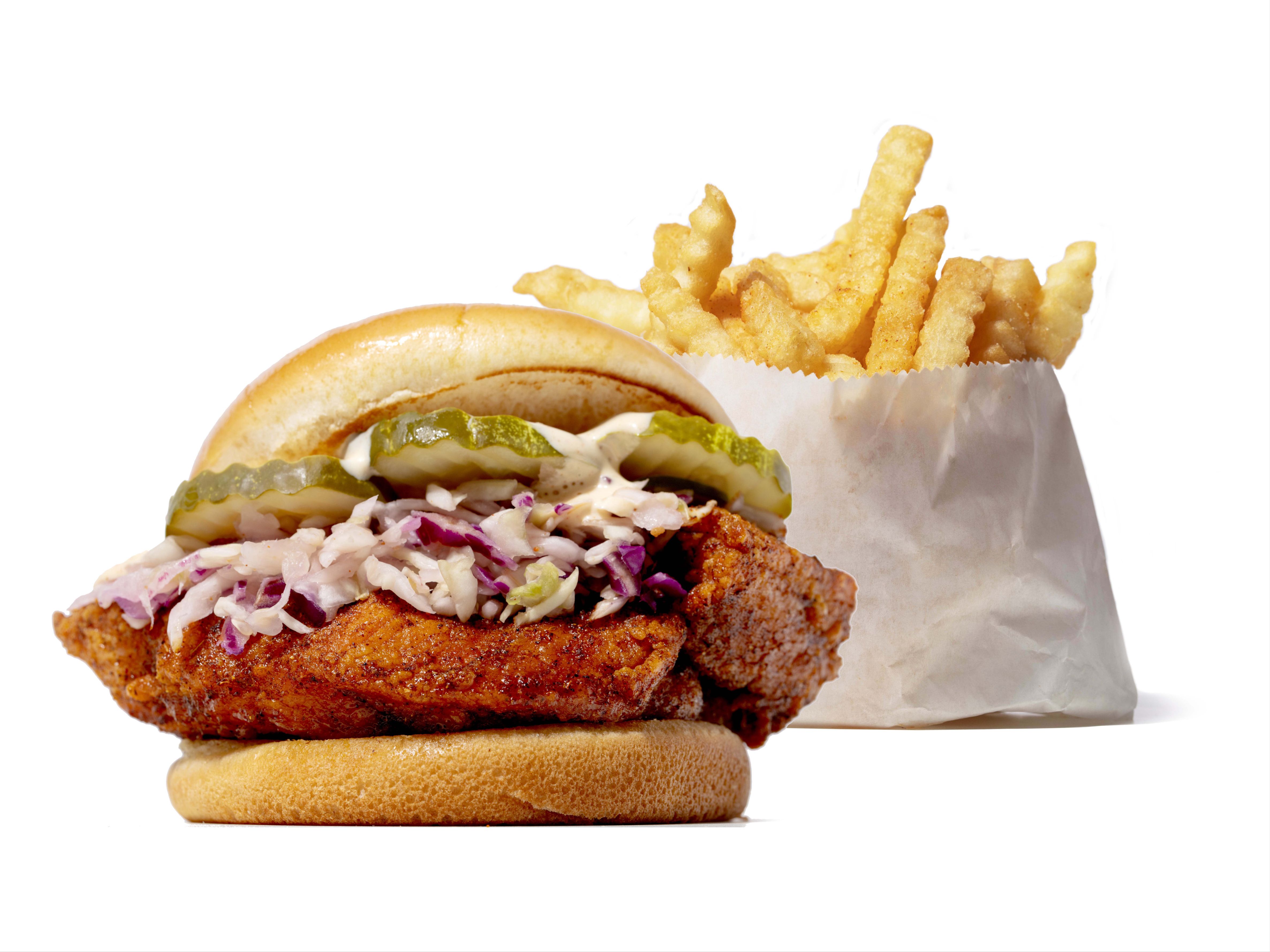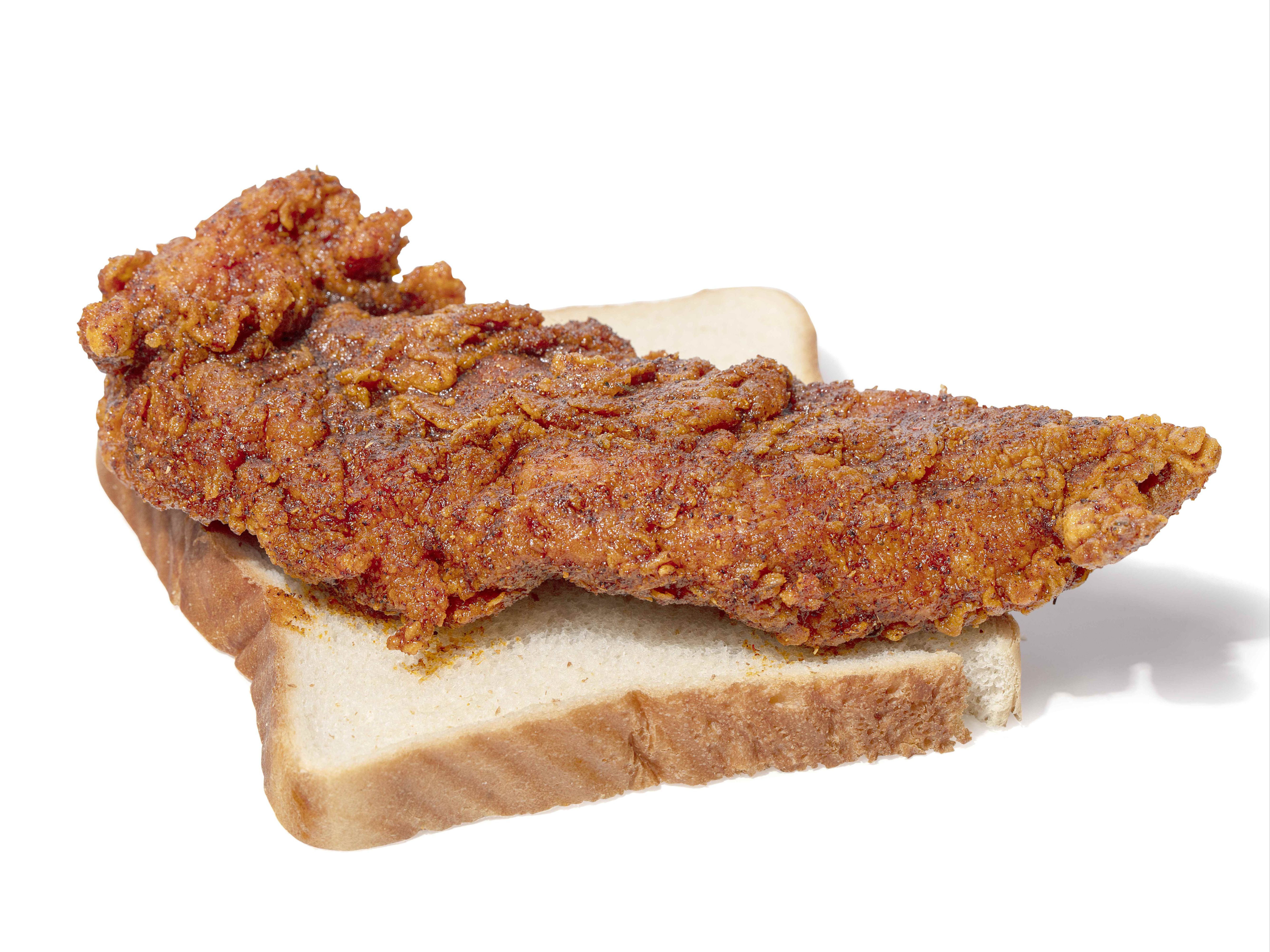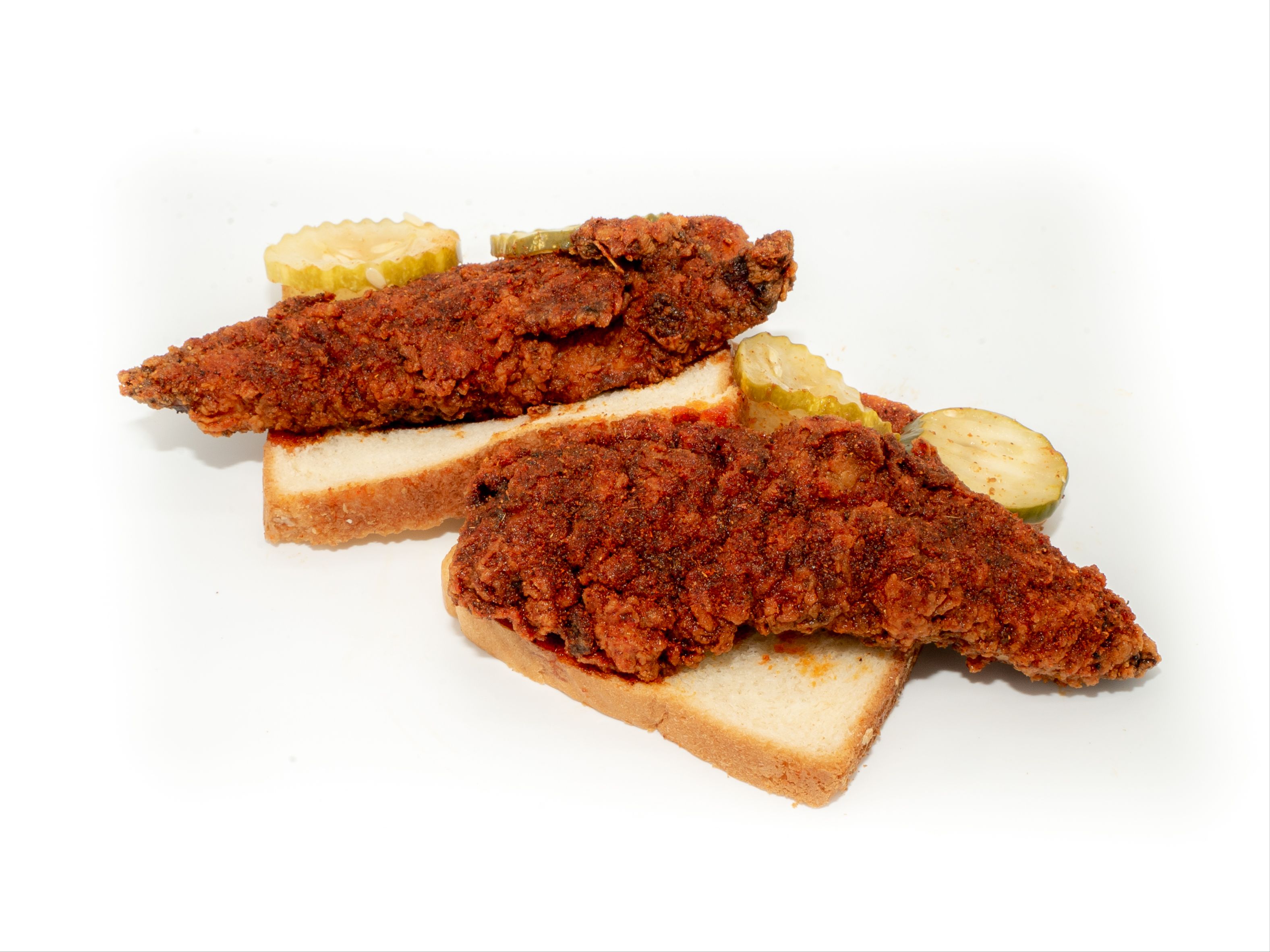 Two crispy tenders seasoned to perfection, served traditionally on regular white bread. Comes with your choice of side