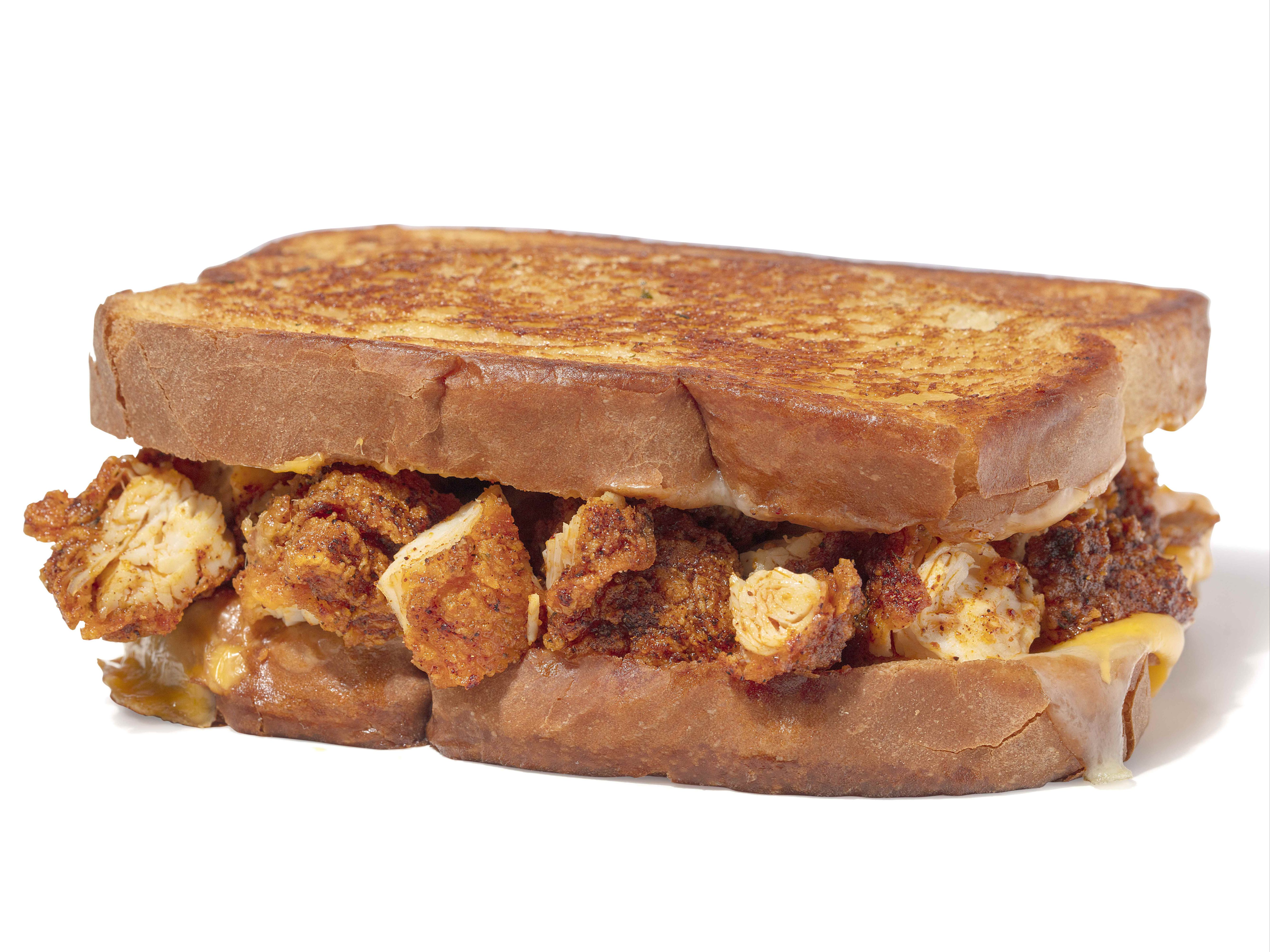 Our Chopped Chicken includes a chopped tender placed inside our Sourdough Grilled Cheese Sandwich. With your choice of toppings.